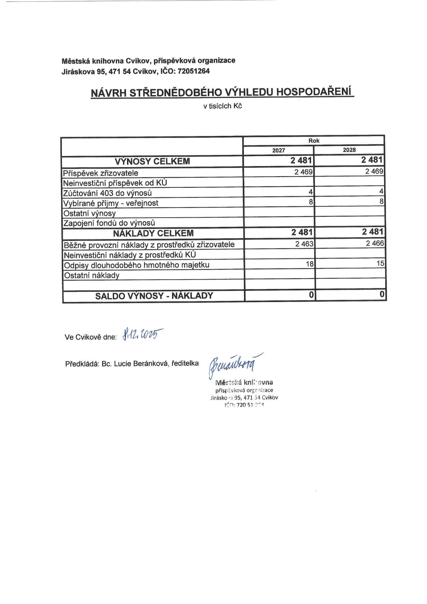 Návrh střednědobého výhledu hospodaření na rok 2027, 2028